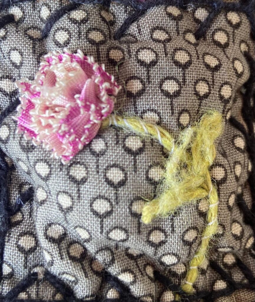 Elle permet d’explorer l’épaisseur, la présence du ruban sur la surface, et d’oser quitter le point plat pour introduire profondeur et mouvement.