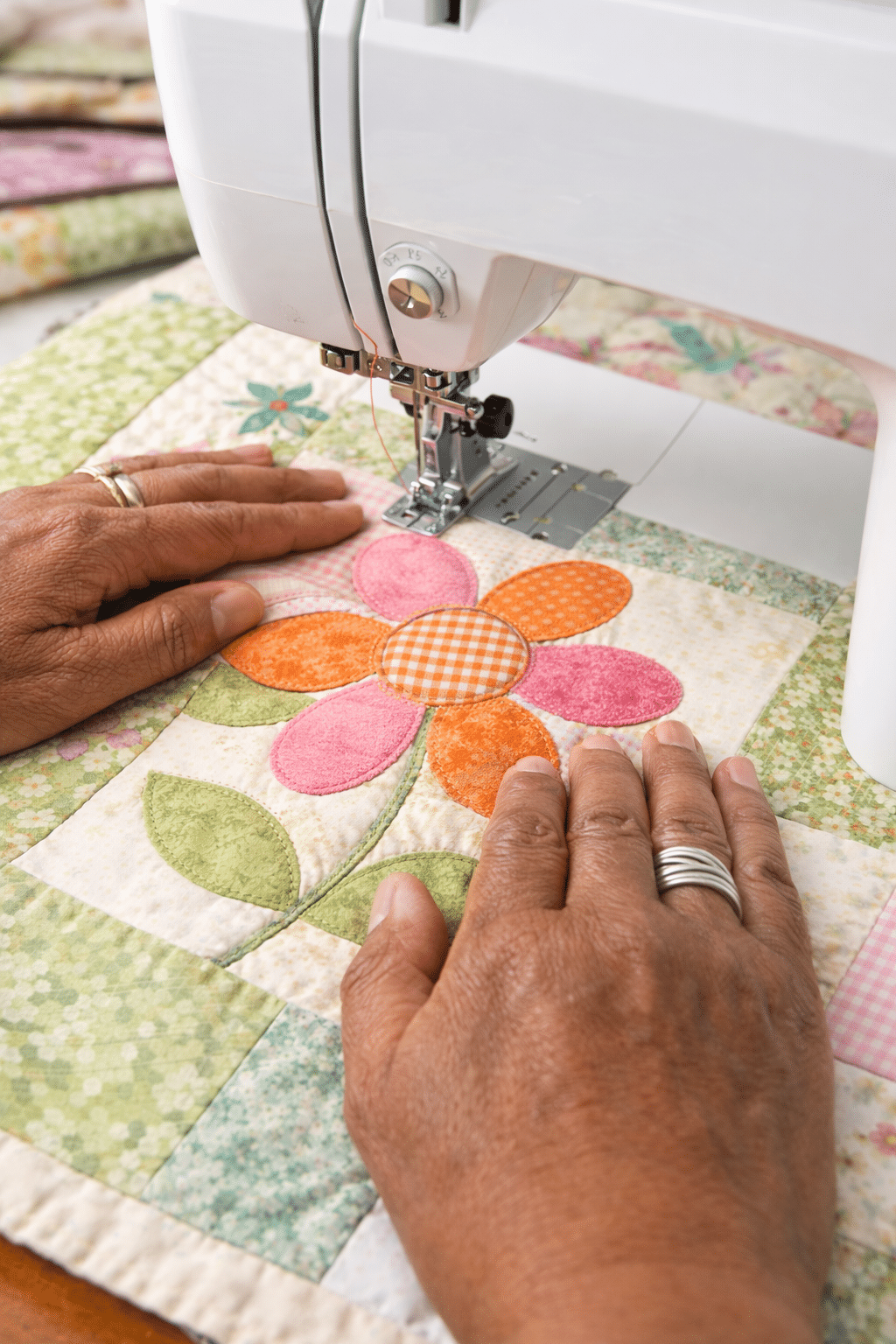 Deux jours pour pratiquer l’appliqué machine et réaliser une pièce aboutie. La machine permet une précision nette et une avancée rapide.